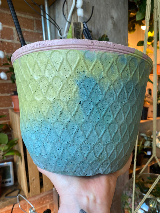 5" Concrete Tapered Pot Yellow/Teal